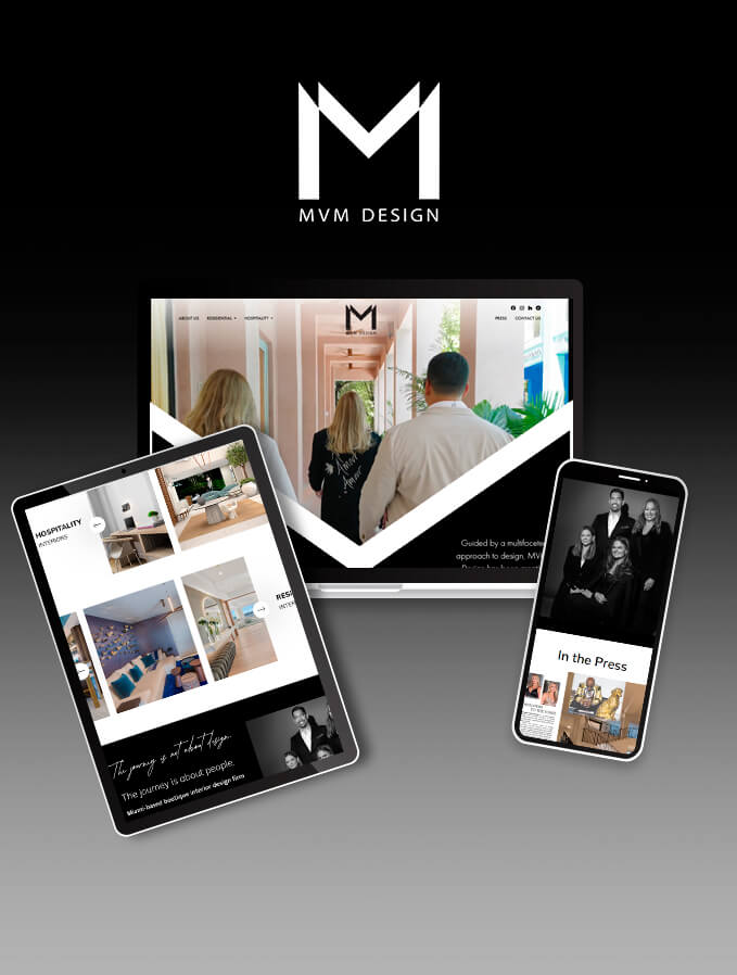 MVM Design engaged us to evolve its brand and digital presence to better reflect the studio’s sophisticated design philosophy, international reach, and growing portfolio of luxury projects. The objective was to position MVM as a premier interior design firm while establishing a cohesive brand foundation that would support long-term visibility, thought leadership, and business growth.